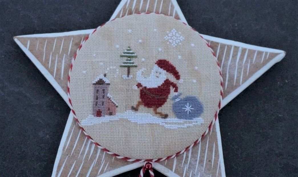 La broderie juste posée sur une étoile en bois de ma réserve et entouré